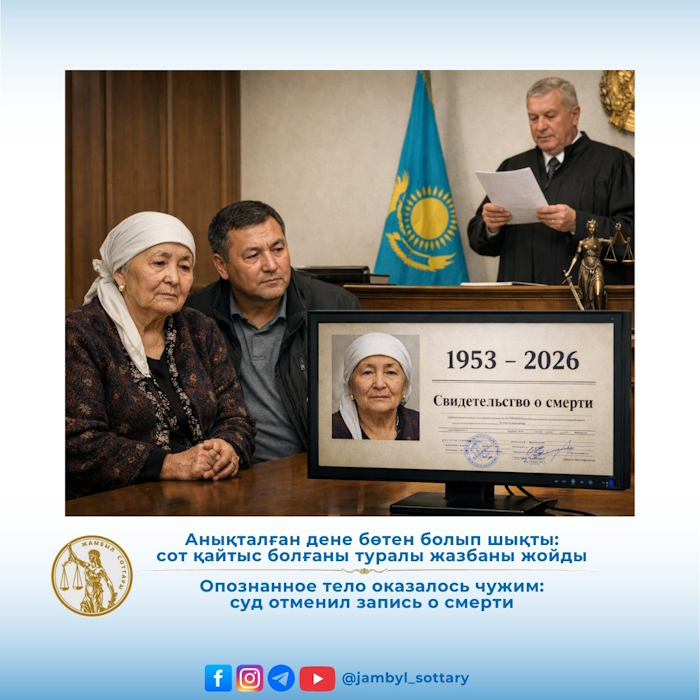 Однако в сентябре 2025 года мать истца пришла в дом своего брата в селе Костобе Жамбылского района. Истец обратилась в суд с иском о признании недействительной и аннулировании актовой записи о смерти, чтобы восстановить правовой статус своей матери.